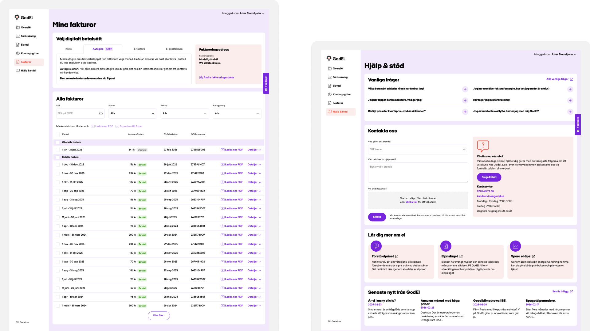 Tillsammans designade vi nya Mina Sidor med kundförståelse i centrum: tydligare översikter, förenklade flöden och en ren, välbalanserad visuell presentation.